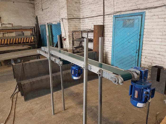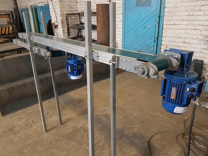 Конвейер ленточный для штучных грузов из алюминиевого профиля